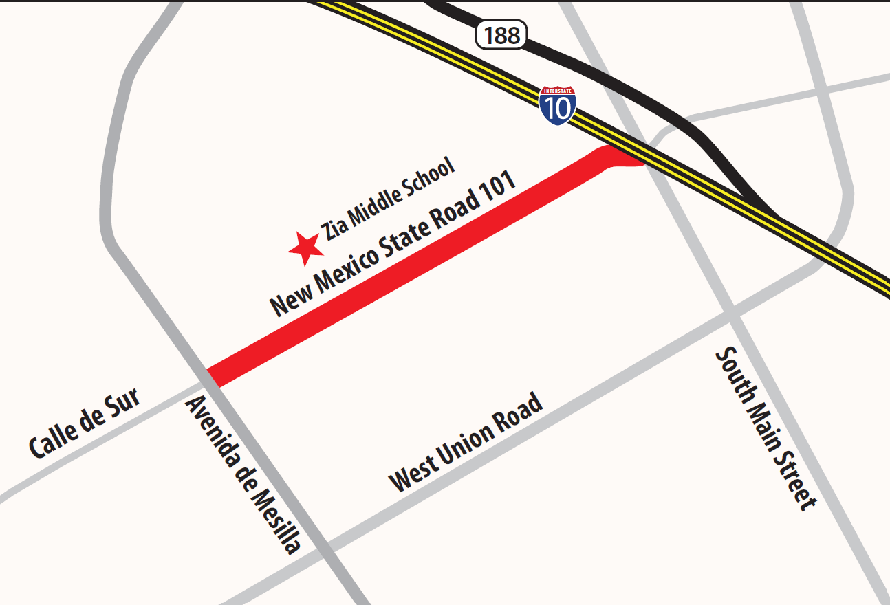 - Only one lane of eastbound traffic will be open on NM 101 (University Ave) between Avenida de Mesilla and S Main Street